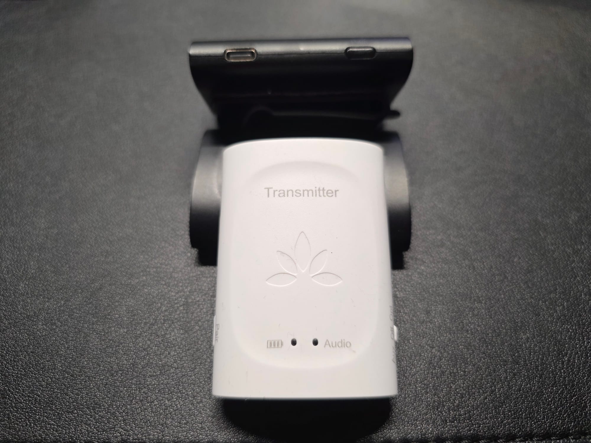 This means you can be completely wireless from a wear perspective as the only wire needed is for the transmitter that's connected to your audio source. The X03 transmitter has branding on the front, the typical wireless certification information on the back, and a power button, LED, USB C port and aux jack on the bottom. The X03 can be connected to an audio source via the 3.5mm aux jack or the USB C port. This is especially handy for connecting to today's modern devices that have no aux port. You won't need a dongle to connect this device to your source.