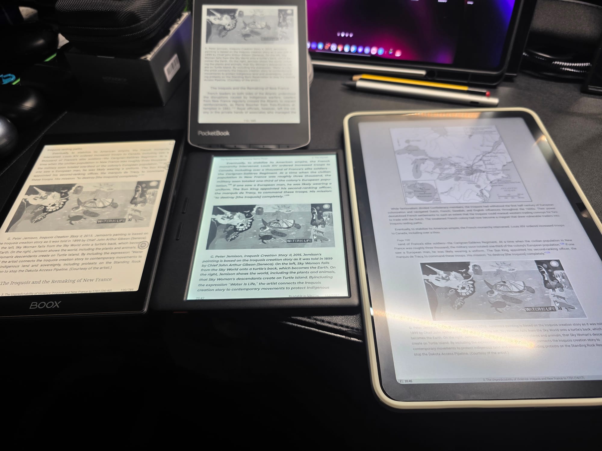 The processor in this e-reader isn't super powerful, but it's enough to allow the device to respond reasonably quickly for most tasks I have attempted to perform on it. Large PDF files open and without much delay and I'm able to page through them without feeling like I'm waiting for the device to catch up. However, such a small screen isn't ideal for PDF viewing. EPUB files open and are navigable with hyperlinks performing as expected. On-screen gestures work surprisingly well when you're holding the tablet in your hands but are hard to pull off when it's lying flat on a table. You can swipe from the top right corner to open the panel for screenshot, study notes, or task switcher. You swipe down from the top to open the control panel, from the bottom left to open the task manager, from the bottom middle to go home, and from the bottom right to open the display optimization settings. These display settings aren't quite as robust as what Onyx Boox offers, with specific DPI and contrast settings by app, but you can alter black enhancement, set weak or strong anti-flicker, set how many pages are required before a refresh, and set refresh modes for clarity or speed. By default, the system display is set to refresh at the clearest setting, and the reader app is set to "Quick Brush". The settings themselves are a little odd: "The Clearest", "Quick", "Quick Brush", and "Intelligent". When scrolling web pages, the Clearest setting is indeed pretty clear and ghosting is cleaned up pretty quickly as you release your finger or pen from the screen. The Quick setting will result in more ghosting but less flashing. Choosing the Quick Brush setting will inform you that it will use more power. This setting is better for video than the Clearest or Quick settings, which will flash much more as they attempt to refresh and clear ghosting. Intelligent is also pretty decent for video, but Quick Brush is arguably the best setting for fast moving objects on the screen. The Clearest setting probably matches up best with what is frequently called "Regal" on other e-readers. The Quick Brush setting matches up with the quickest refresh settings on e-readers that provide the best viewing for video and animated graphics (e.g. Speed modes on Onyx Boox devices). As it's a black and white e-reader, the screen always looks sharp. You don't have the color layer making everything seem half as sharp.